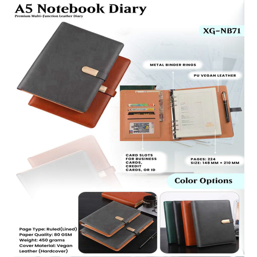 Page Type: Ruled (lined) Paper Quality : 80 GSM Weight : 450 grams Cover Material : Vegan Leather (hardcover)