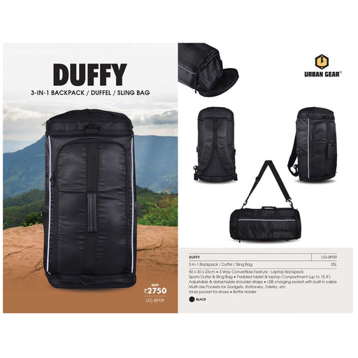 View full details* 50*30*23cm* 3 Way Convertible Feature - Laptop Backpack Sports Duffel & Sling Bag* Capacity upto 35L* Padded tablet & Laptop Compartment ...