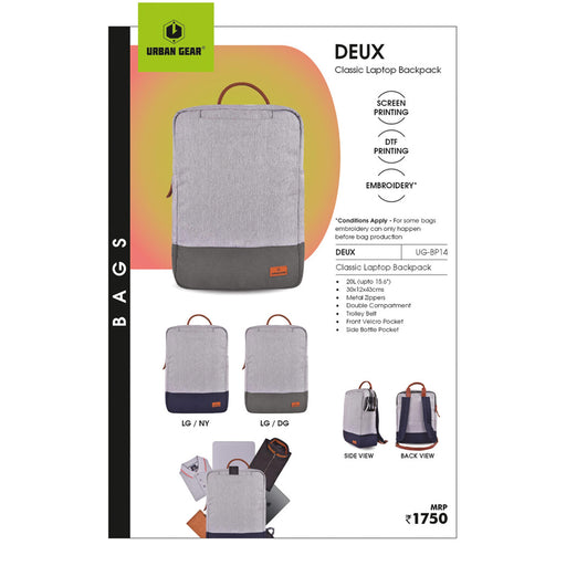 View full details* 44*31*15Cm* Dual Compartmet* Double Sided Bottle Holder* Padded Laptop Compartments* Front Zippered Pocket* capacity : 20L (Upto 15.4)* Multi-Use...