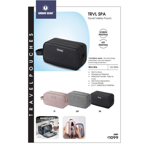 View full detailsURBAN GEAR -Trvl Spa - Travel Toiletry Pouch - UG-TB35