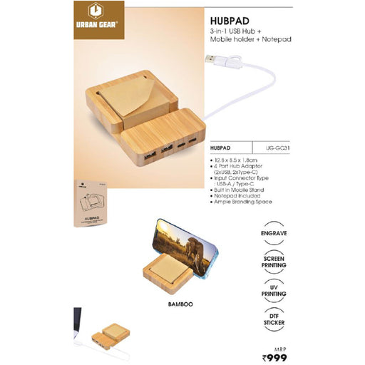 URBAN GEAR - HUBPAD - 3-in-1 USB Hub + Mobile Stand + Notepad - UG-GC31