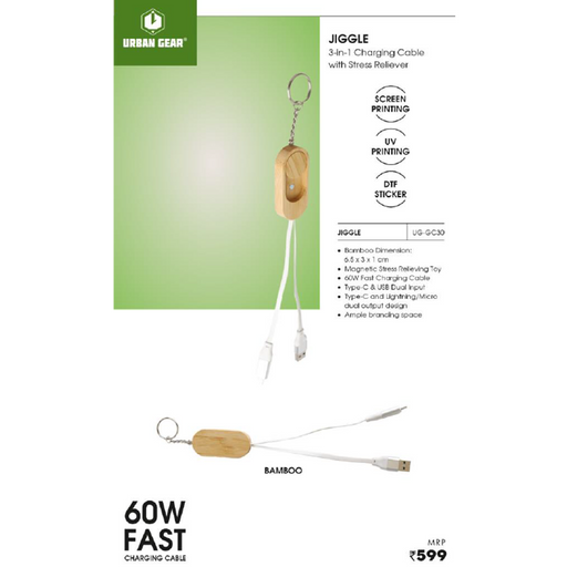 URBAN GEAR - JIGGLE - 3-in-1 Fast Charging Cable + Stress Reliever (60W) - UG-GC30 -