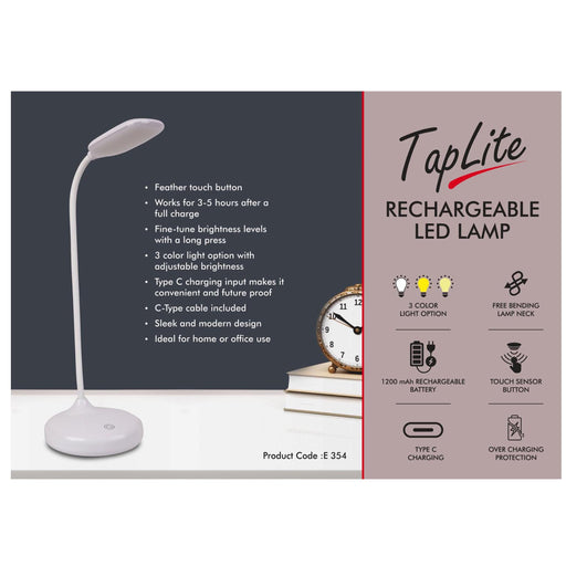 TapLite : Rechargeable LED lamp | 3 Color light with Brightness adjustment | Type C Charging - E 354